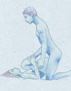 Todas as posições por trás permitem profunda penetração, mas o Kama Sutra deixa claro que o erotismo fica por conta de imaginar que é uma posição mais selvagem, parecida com a dos animais. A mulher se deita de costas, e o homem se encaixa por cima.